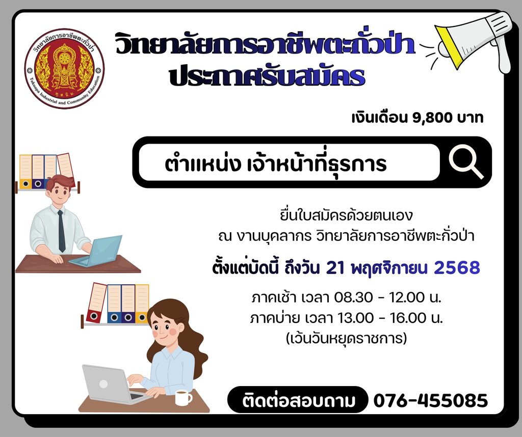 โทรศัพท์/โทรสาร : 076-455-085 E-mail : Takuapacollege@gmail.com